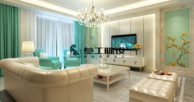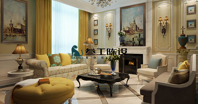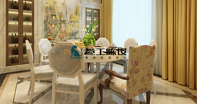 本案列业主一直钟情于欧式风格的古朴色调,天然材质和深沉而含蓄的文艺美,这次设计师在保持美式风格深色木色家具的同时,在软装配饰上面搭配跳跃的色彩,张弛有度,不让人觉得沉闷,而且有一股文艺风格扑面而来